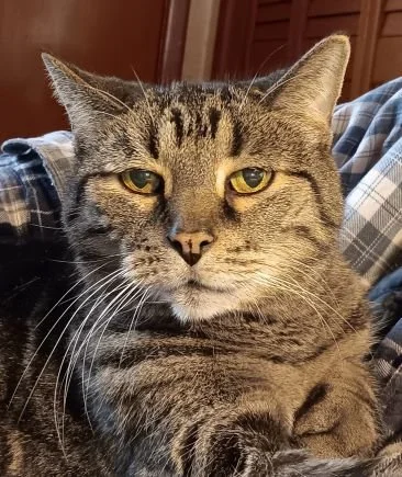 Some days later Tom came up to the door with Jack in a kitty-carrying case. Once inside, Tom sat on the sofa and opened the case. Jack emerged and immediately climbed onto Tom’s lap. “See, I told you. Jacks a very nice cat, very friendly”.